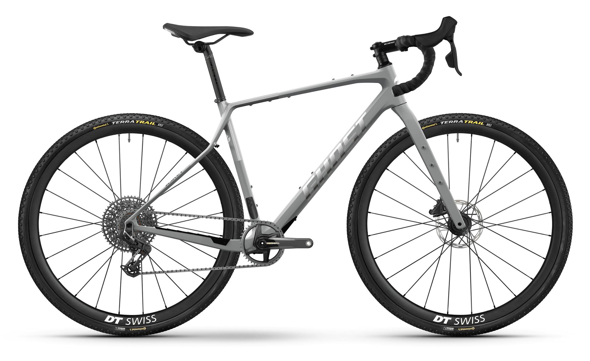 – Asket CF LTD: Metalicky stříbrný rám je vybaven elektrickou sadou SRAM Force 1×12 a karbonovými koly DT Swiss GRC 1100 Dicut.