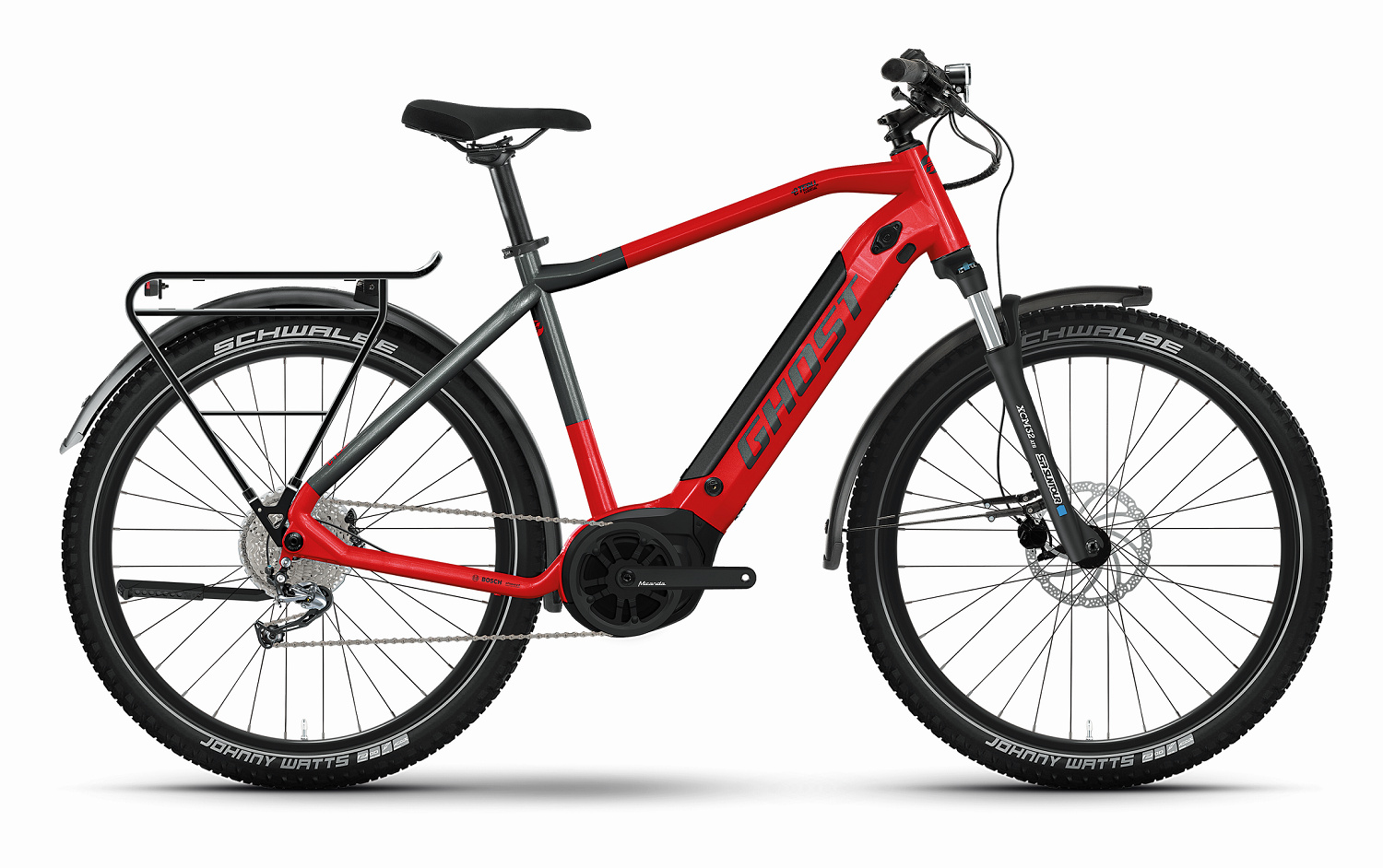 Vyladěná kombinace propracovaného designu, výkonného motoru Bosch Performance, vidlice SR Suntour XCM32 a 27,5palcová kola vám zajistí bezproblémové zdolání jakéhokoli terénu. Ghost E-Teru Essential je jednoduše parťák do nepohody, na kterého se můžete spolehnout. Během jízdy můžete měnit režimy asistence podle toho, jak velkou přípomoc zrovna budete potřebovat. Veškeré jízdní údaje jako jsou vzdálenost, rychlost, stav nabití baterie nebo stupeň asistence se zobrazují na dobře čitelném LED displeji. O bezproblémový chod jízdy se stará řazení Shimano CUES s 1×9 převody a o perfektní brzdný účinek spolehlivé Tektro HD-M275. Model EQ má navíc v základní výbavě praktický nosič, stojan, blatníky a přední a zadní světlo. Stačí nasednou a vydat se vstříc novým zážitkům!